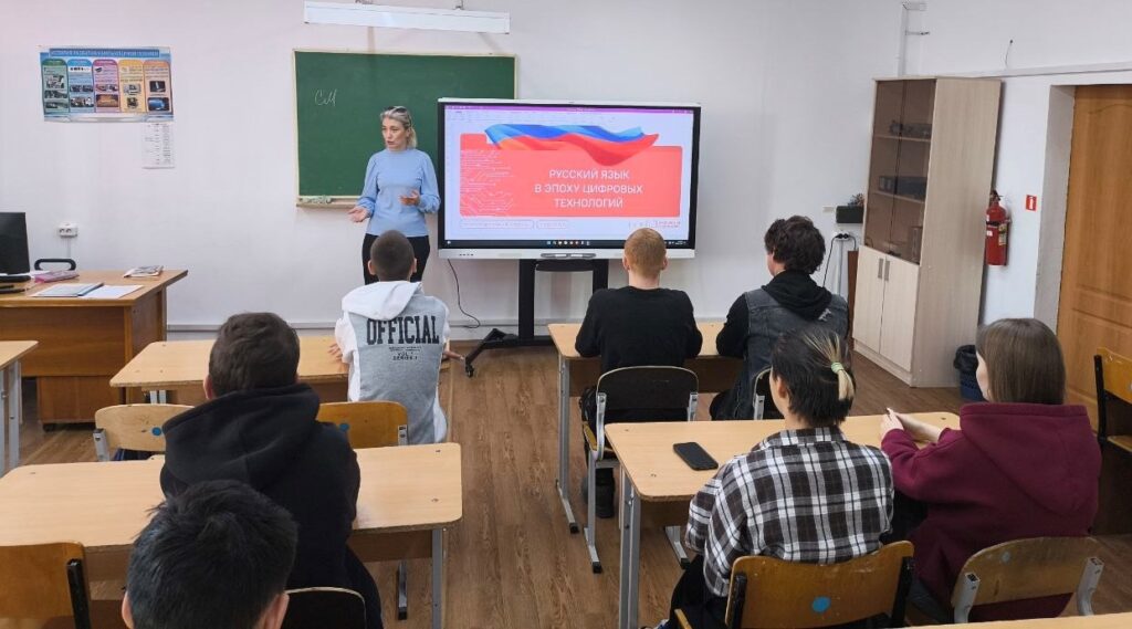 Занятие «Разговоры о важном» было посвящено теме «Русский язык в эпоху цифровых технологий». Урок прошел увлекательно: студенты обсудили значение русского языка как официального государственного языка многонациональной страны. Информация о современных изменениях в языковом ландшафте, вызванных развитием цифровых технологий, вызвала живой интерес у обучающихся.