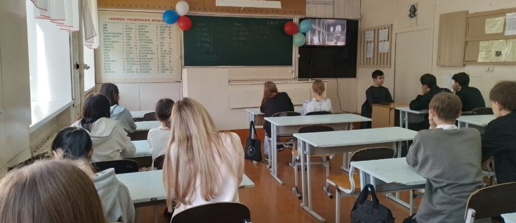 После линейки обучающиеся приняли участие во внеурочном занятии в рамках проекта «Разговоры о важном». Тема урока — «Мирный атом. День работника атомной промышленности».