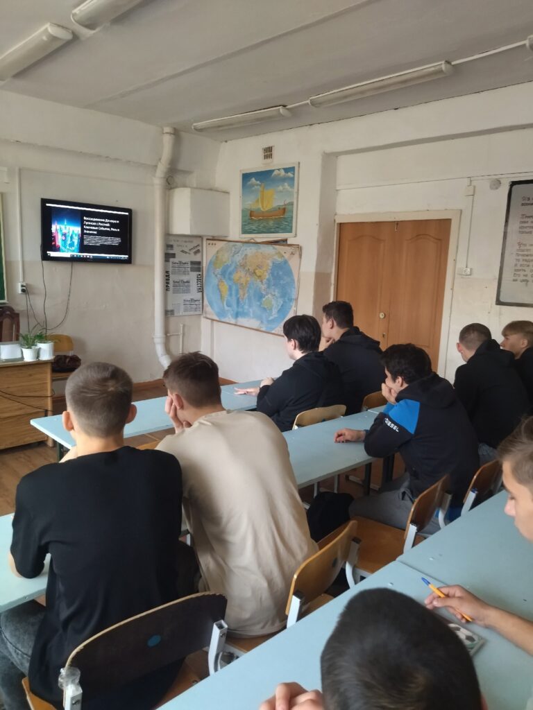 Сегодня студенты прослушали лекцию «Сильны Единством. Как в новые регионы приходит мирная жизнь» к Дню воссоединения ДНР, ЛНР, Запорожской и Херсонской областей с РФ. Которую провёл онлайн лектор от Всероссийского общество Знания: Николай Шишкин, участник СВО, заместитель председателя по военной и технической подготовке, Региональное отделение ДОСААФ России Кировской области
