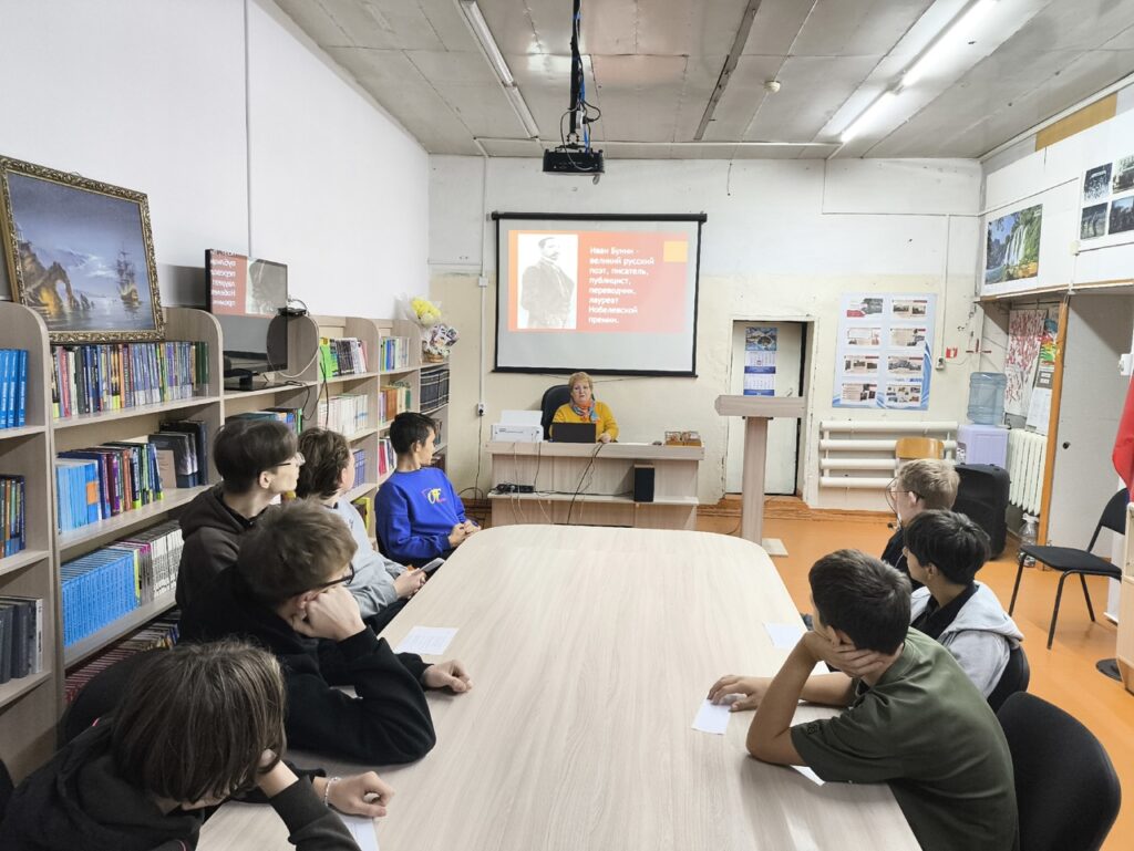 Наш техникум не остался в стороне от этого события! В библиотеке прошёл тематический урок, на котором наш библиотекарь Ирина Викентьевна подготовила замечательную презентацию о биографии и творчестве Бунина.