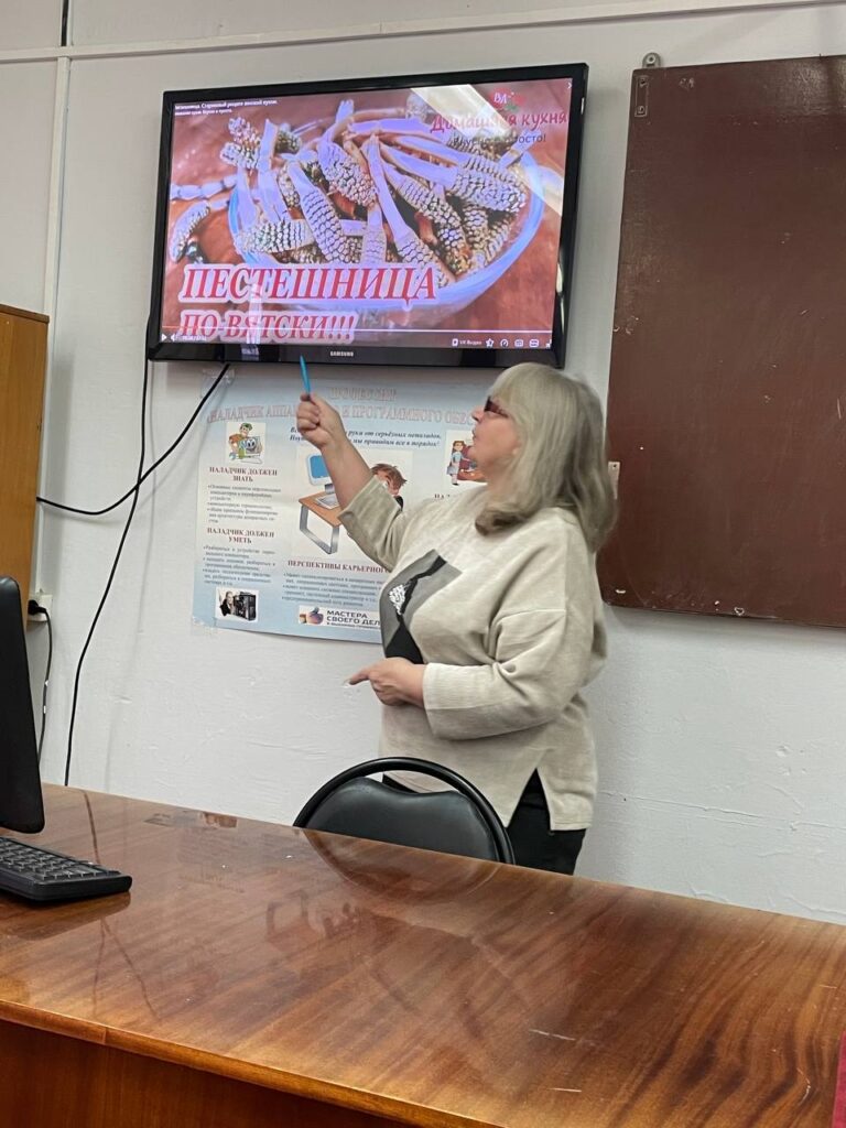 Наши преподаватели и мастера производственного обучения проводят для студентов техникума тематические занятия и беседы: знакомят будущих поваров и технологов с особенностями кухни Вятского края и старинными кулинарными традициями. Такие занятия проходят на всех курсах специальности «Поварское и кондитерское дело». Важно, чтобы будущие специалисты знали местную кухню, умели бережно адаптировать традиционные рецепты под современные условия и продукты — и возвращать забытые блюда в повседневную жизнь.