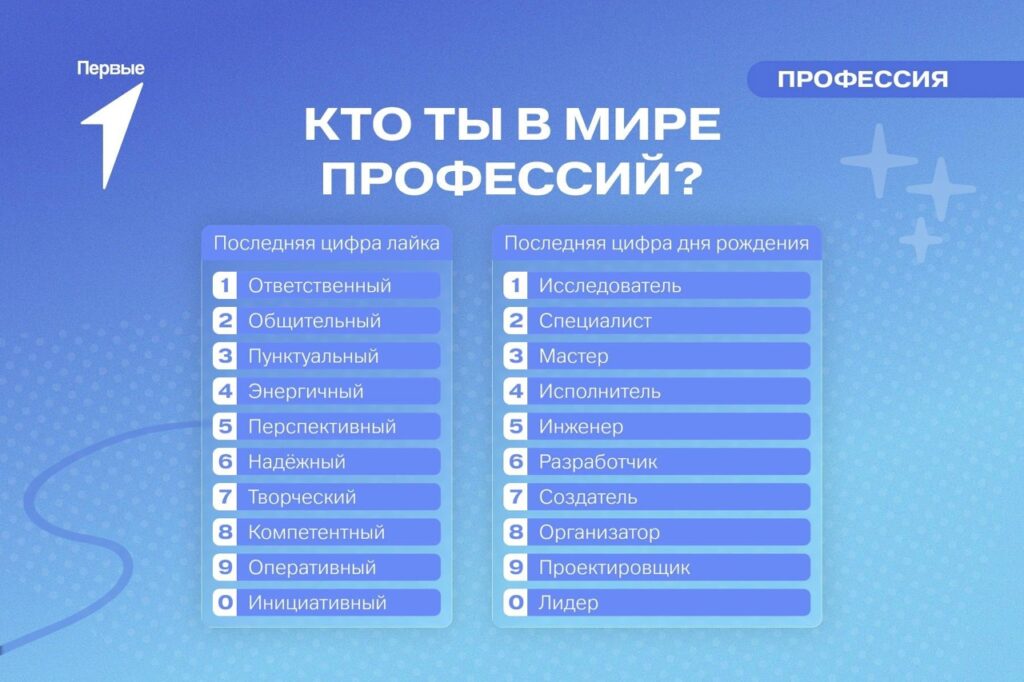 Выбирай по одному слову из каждой колонки и собирай свой профессиональный тип! Делись результатом с Движением Первых!